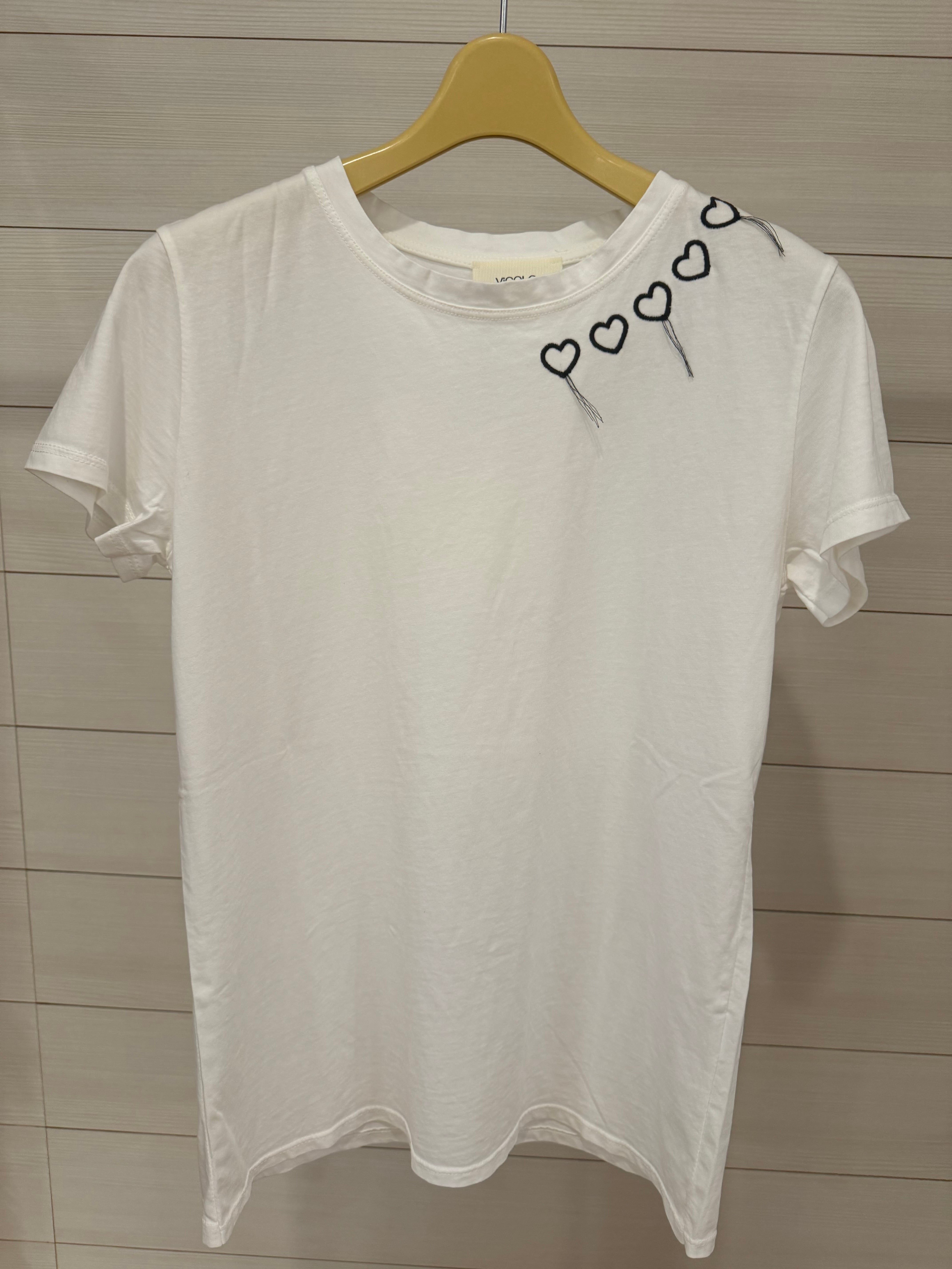 左肩にハートの刺繍が施されたデザインです