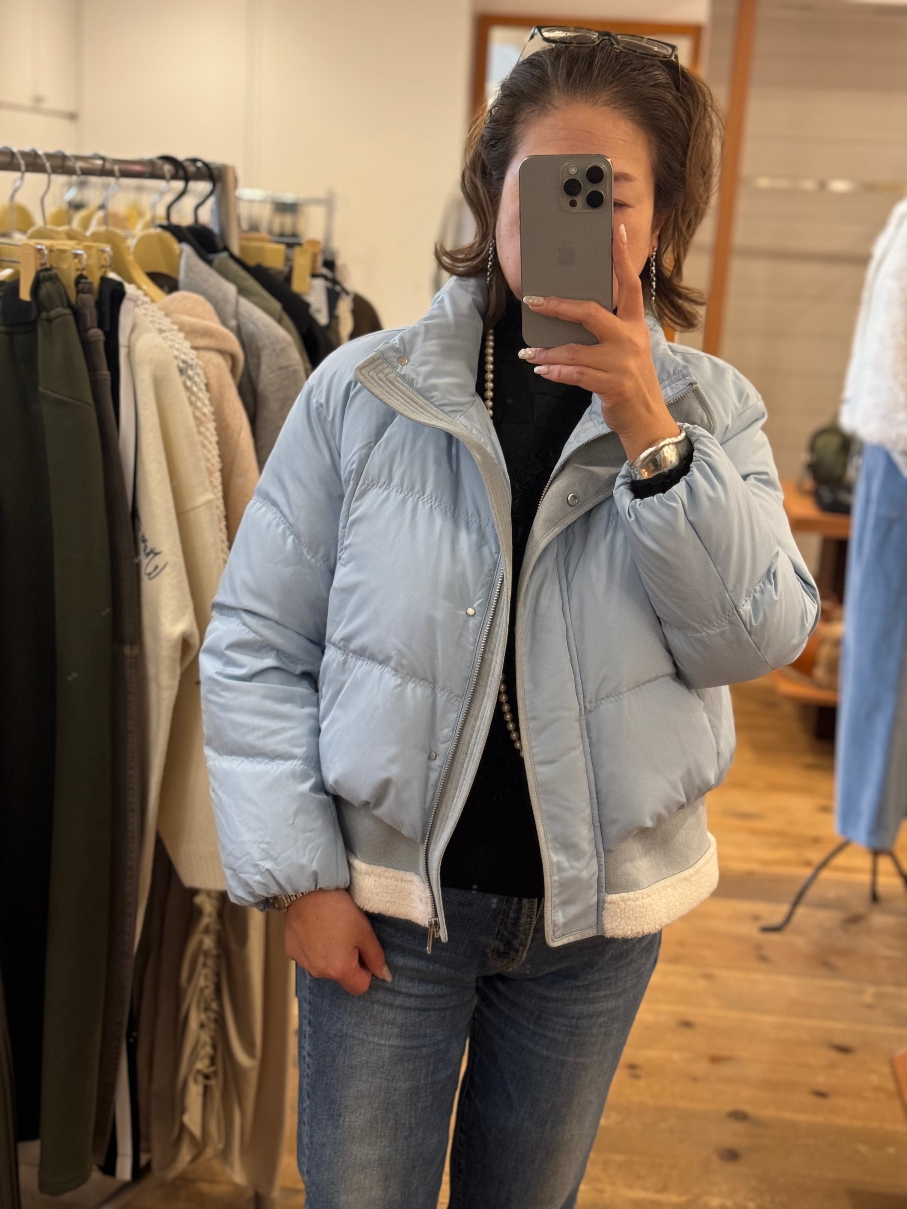 裾のデザインがレイヤード風ショートダウンコートです。 スッキリみえのデザインです