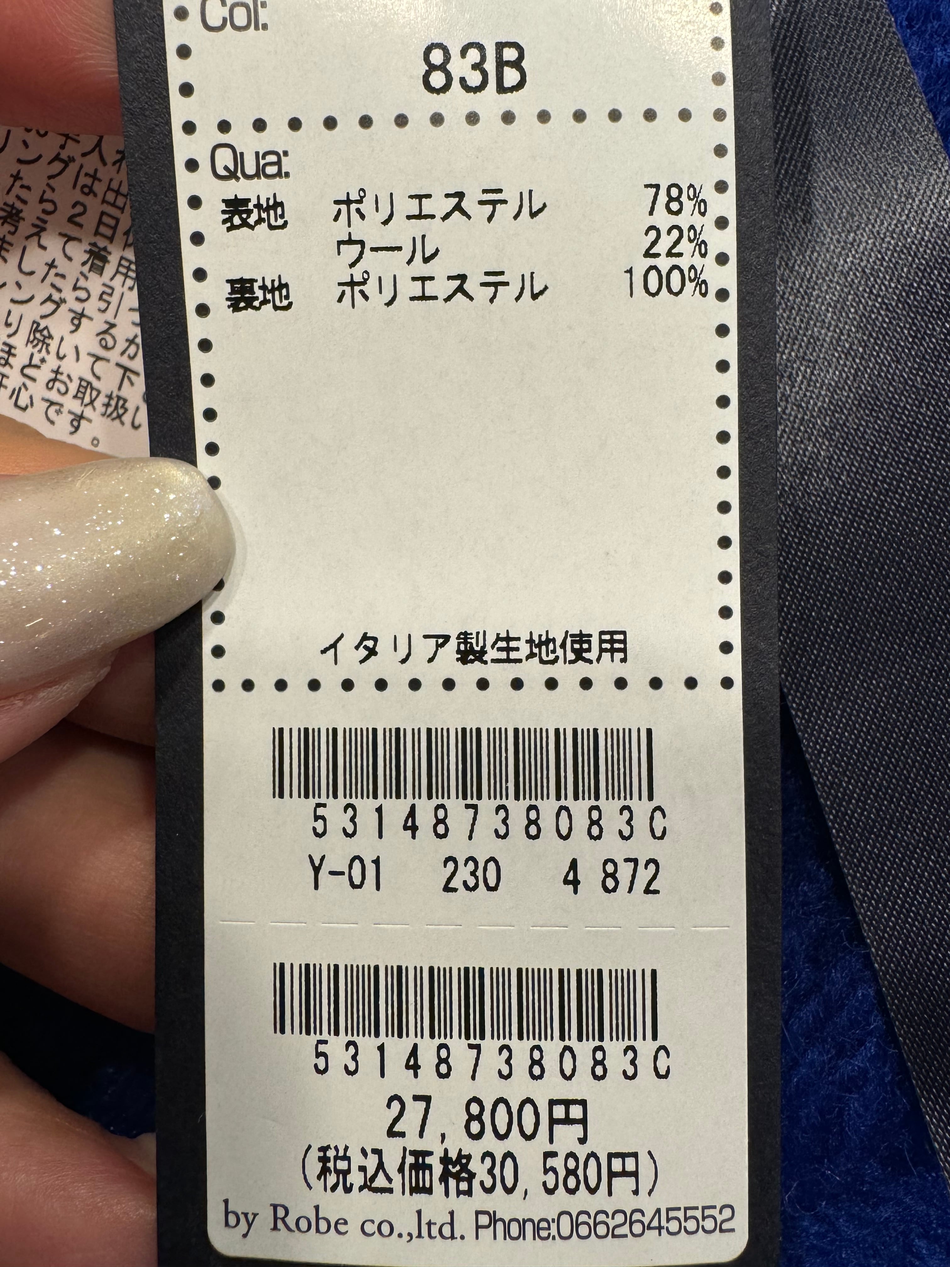 イタリー製生地使用